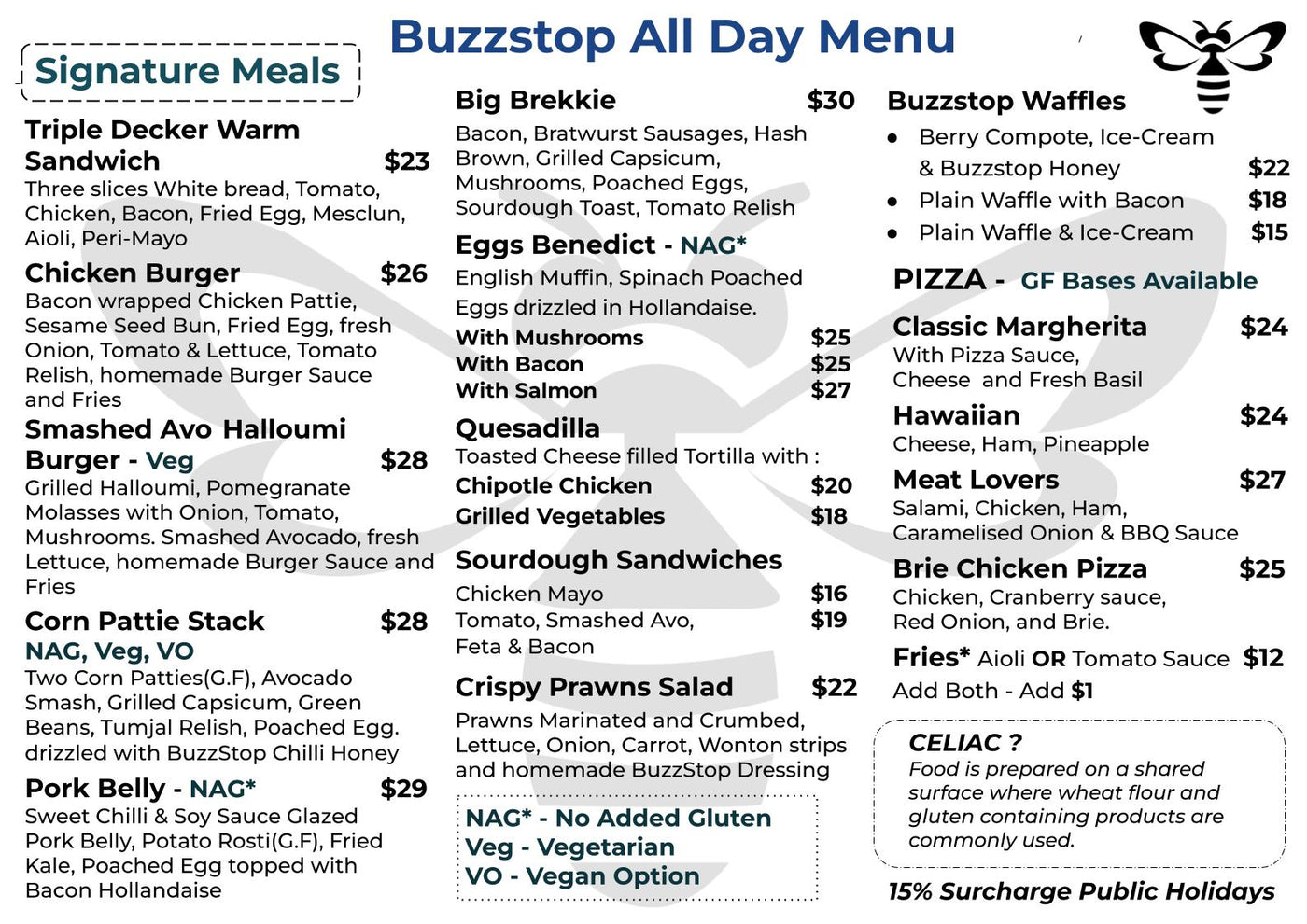 CAFE is OPEN 7 DAYS from 9am to 3pm / BUZZSTOP IS FULLY LICENSED / FUNCTION ROOM AVAILABLE
